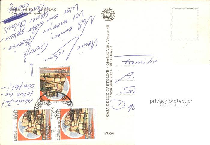 old postcard Sanremo Casino Municipale postalisch gelaufen Erhaltung siehe scans [WerneD78]