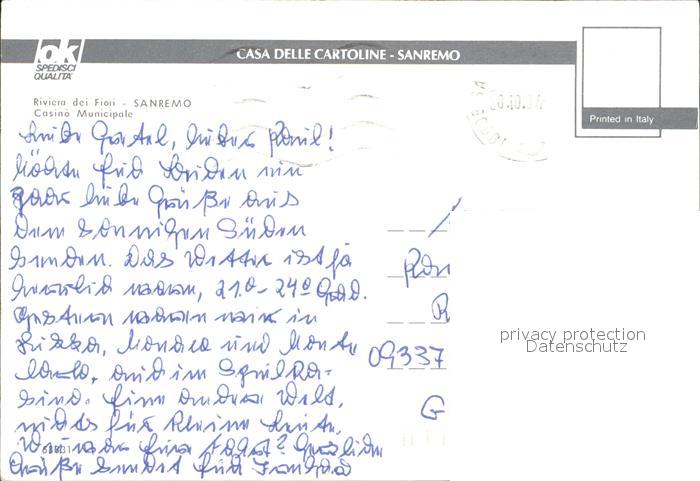 old postcard Sanremo Casino Municipale Riviera dei Fiori postalisch gelaufen Erhaltung siehe scans