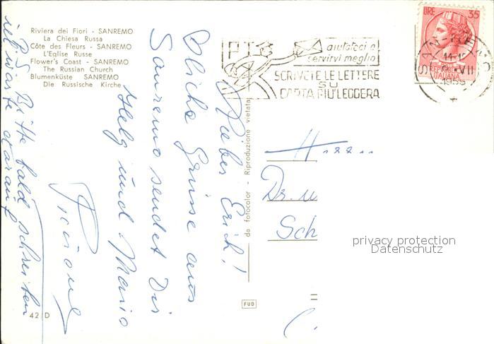 old postcard Sanremo Chiesa Russa postalisch gelaufen Erhaltung siehe scans