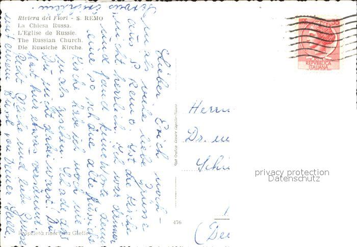 old postcard Sanremo Chiesa Russa postalisch gelaufen Erhaltung siehe scans