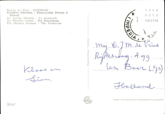 11490496 Sanremo Giardini Oberdan Passeggiata Trento e Trieste KatCode 11240