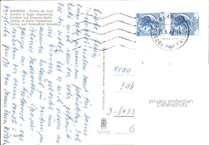 old postcard Sanremo G?rten Badeanstalt Kaiserin postalisch gelaufen Erhaltung siehe scans