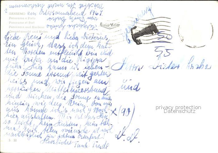 old postcard Sanremo Hafen postalisch gelaufen Erhaltung siehe scans