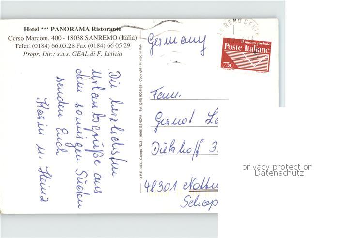 old postcard Sanremo Hotel Restaurant Panorama postalisch gelaufen Erhaltung siehe scans