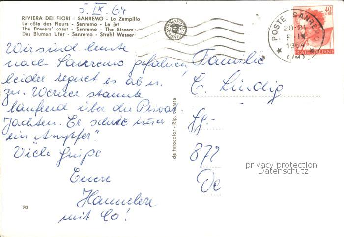 old postcard Sanremo Lo Zampillo postalisch gelaufen Erhaltung siehe scans