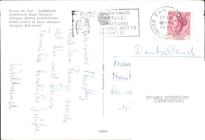 old postcard Sanremo Morgana Strand postalisch gelaufen Erhaltung siehe scans