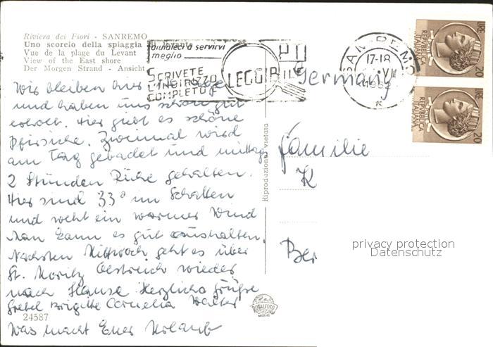 old postcard Sanremo Morgen Strand postalisch gelaufen Erhaltung siehe scans