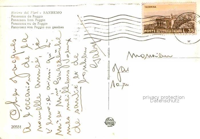 old postcard Sanremo Panorama da Poggio postalisch gelaufen Erhaltung siehe scans [WerneD78]