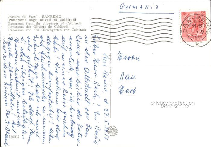 old postcard Sanremo Panorama dagli oliveti di Coldirodi Riviera dei Fiori Olivengarten postalisch gelaufen Erhaltung siehe scans