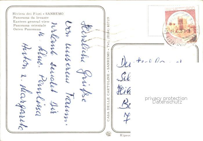 old postcard Sanremo Panorama Hafen Palmen postalisch gelaufen Erhaltung siehe scans
