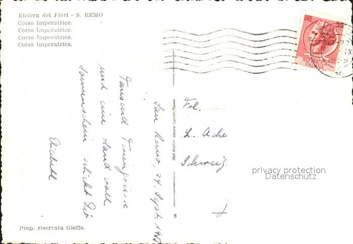 old postcard Sanremo Panorama Stadtansicht postalisch gelaufen Erhaltung siehe scans