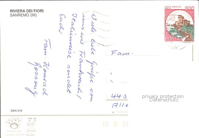 old postcard Sanremo Park Brunnen Statue Casino Russische Kirche Hafen Nachtaufnahme postalisch gelaufen Erhaltung siehe scans