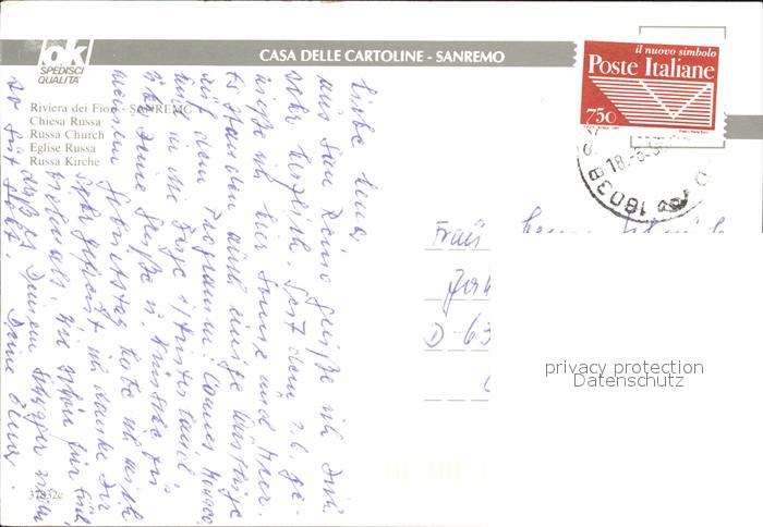 old postcard Sanremo Riviera Fiori Chiesa Russa postalisch gelaufen Erhaltung siehe scans