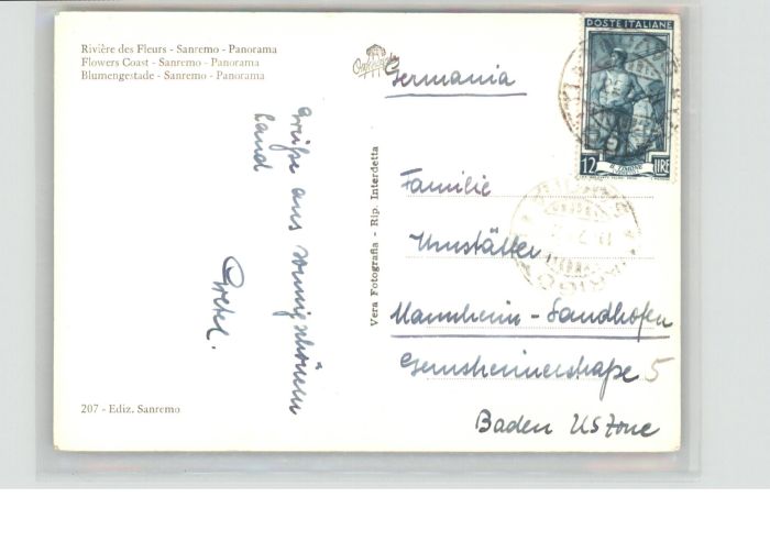old postcard Sanremo Riviera Fiori postalisch gelaufen