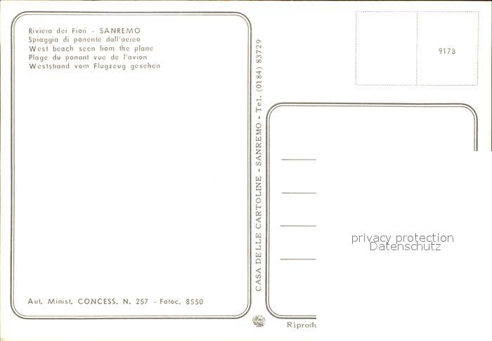 Sanremo Spiaggia Riviera dei Fiori veduta aerea postalisch nicht gelaufen Erhaltung siehe scans