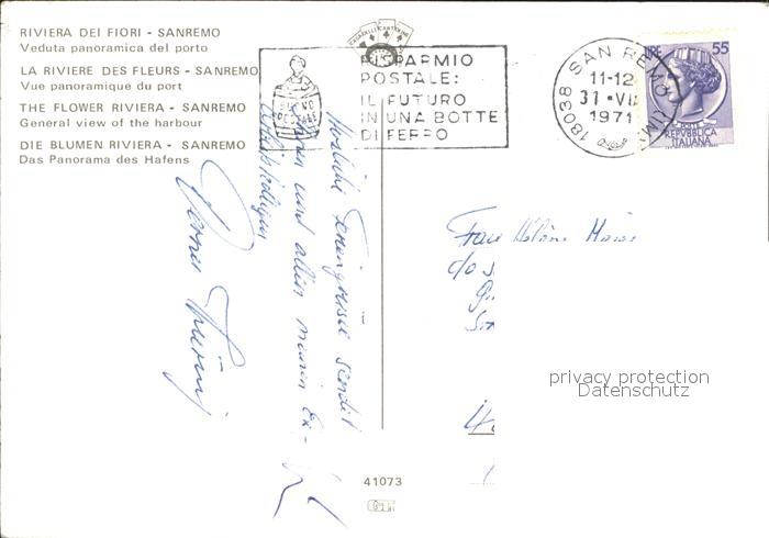 old postcard Sanremo Veduta panoramica del porto postalisch gelaufen Erhaltung siehe scans