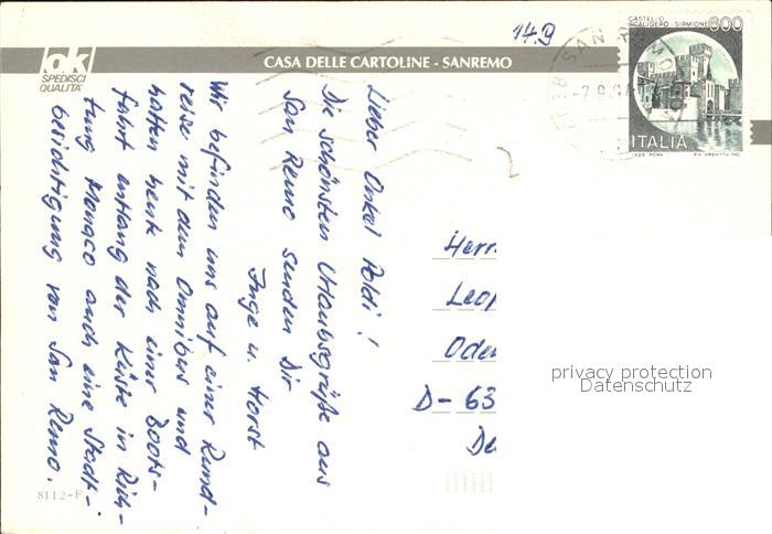 old postcard Sanremo Villa Kirche Park Panorama postalisch gelaufen Erhaltung siehe scans