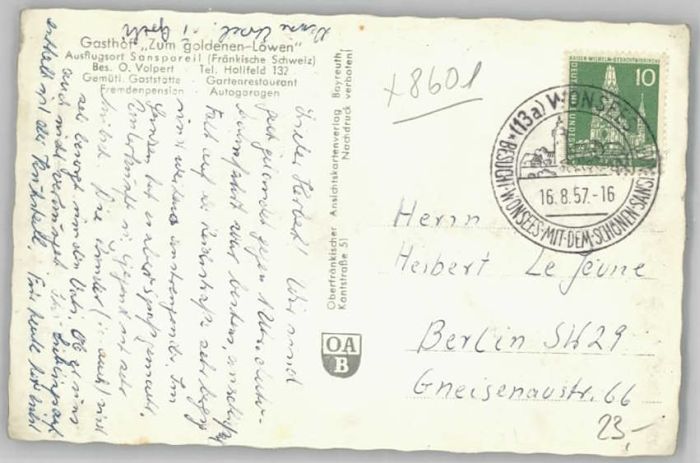Sanspareil Gasthof Zum goldenen Löwen x 1957