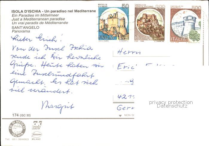 old postcard Sant Angelo Ischia Fliegeraufnahme postalisch gelaufen Erhaltung siehe scans