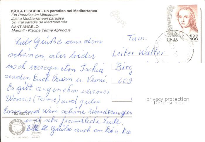 old postcard Sant Angelo Ischia Hotel Maronti Piscine Terme Aphrodite postalisch gelaufen Erhaltung siehe scans