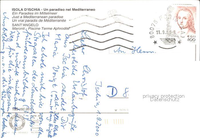 old postcard Sant Angelo Ischia Hotel Maronti Piscine Terme Aphrodite postalisch gelaufen Erhaltung siehe scans