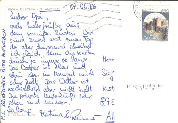 old postcard Sant Angelo Ischia Panorama Kueste postalisch gelaufen Erhaltung siehe scans