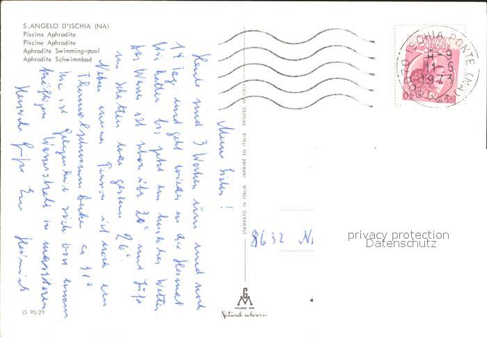 old postcard Sant Angelo Ischia Piscina Aphrodite Schwimmbad postalisch gelaufen Erhaltung siehe scans