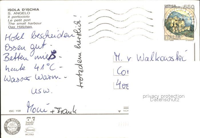 old postcard Sant Angelo Ischia Porticciolo Kleiner Hafen postalisch gelaufen Erhaltung siehe scans