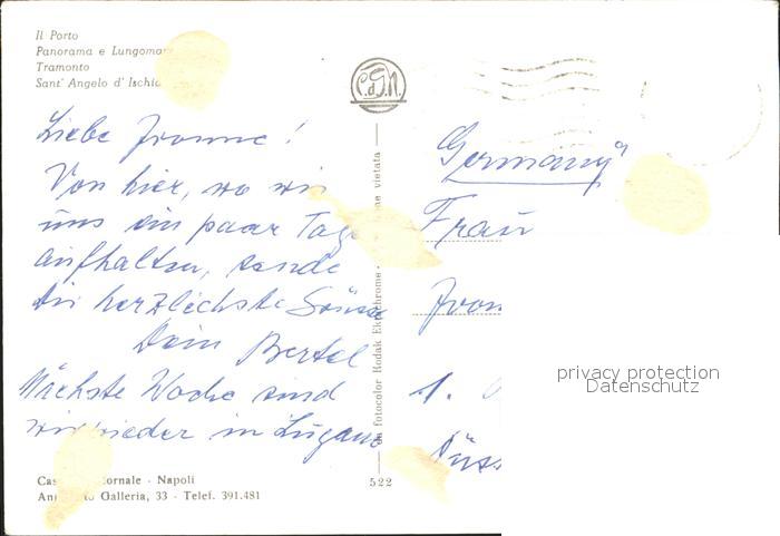 old postcard Sant Angelo Ischia Porto Panorama e Lungomare Tramonto postalisch gelaufen Erhaltung siehe scans