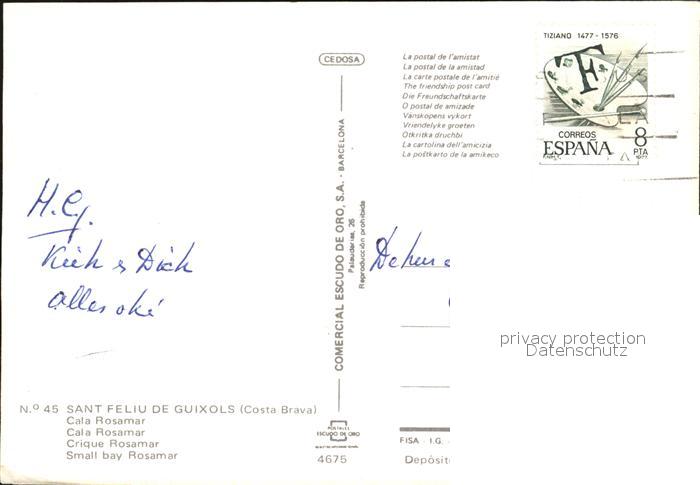 old postcard Sant Feliu de Guixols Cala Rosamar postalisch gelaufen Erhaltung siehe scans