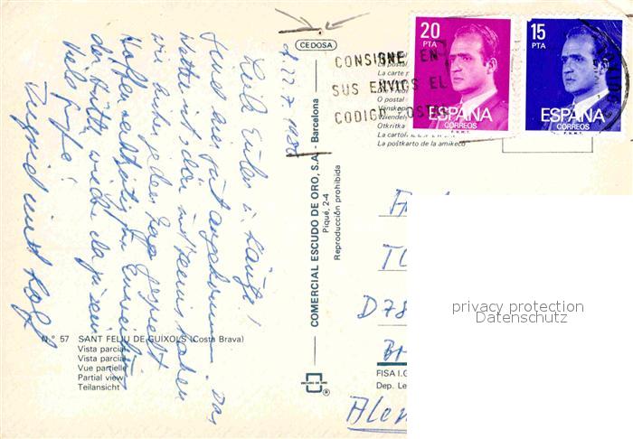 alte Postkarte Sant Feliu de Guixols Strand Boote Panorama postalisch gelaufen Erhaltung siehe scans [WerneD78]
