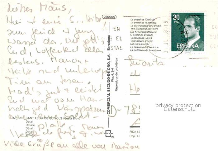 alte Postkarte Sant Feliu de Guixols Strand Bootsliegeplatz Panorama postalisch gelaufen Erhaltung siehe scans [WerneD78]