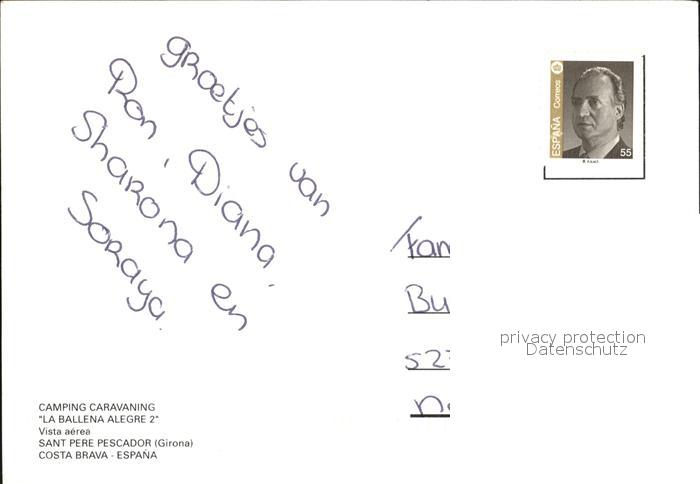 Sant Pere Pescador Camping Caravaning La Ballena Alegre 2 postalisch nicht gelaufen Erhaltung siehe scans