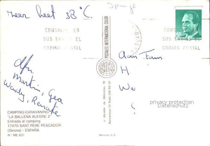 old postcard Sant Pere Pescador Camping Caravaning La Ballena Alegre postalisch gelaufen Erhaltung siehe scans