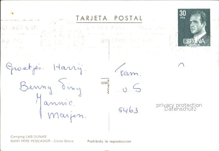 old postcard Sant Pere Pescador Camping Las Dunas postalisch gelaufen Erhaltung siehe scans