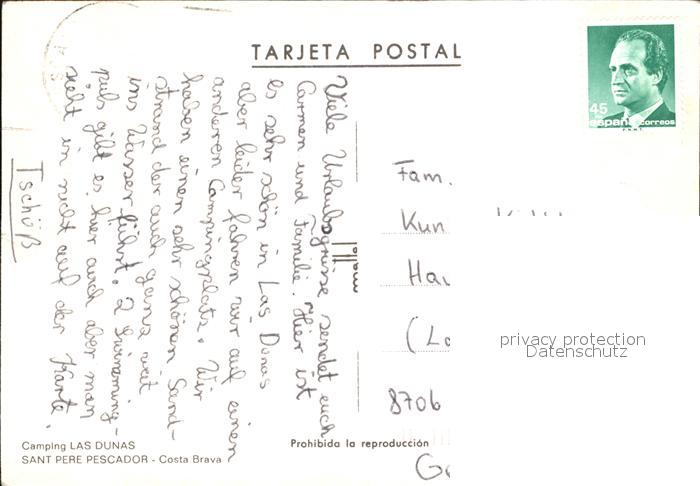 old postcard Sant Pere Pescador Camping Las Dunas Fliegeraufnahme postalisch gelaufen Erhaltung siehe scans