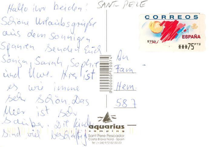 old postcard Sant Pere Pescador Costa Brava ES Aquarius Camping Fliegeraufnahme Strandpartie postalisch gelaufen Erhaltung siehe scans [WerneD78]