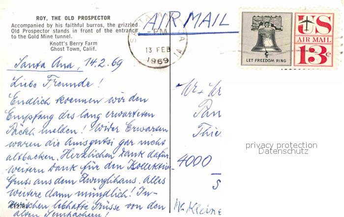 72645191 old postcard Santa Ana California Roy the old prospector postalisch gelaufen Erhaltung siehe scans [WerneD78] KatCode: 14140050000000
