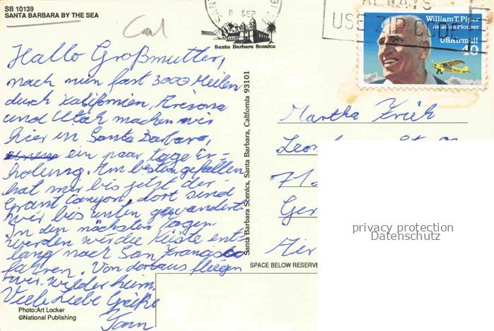 74095194 old postcard SANTA-BARBARA -by-the-Sea California USA Fliegeraufnahme postalisch gelaufen Erhaltung siehe scans [WerneD78] KatCode: 14140050000000