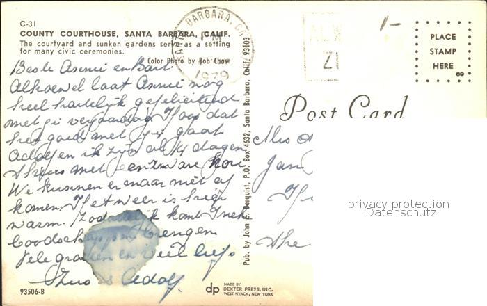 72271986 old postcard Santa Barbara California County Courthouse postalisch gelaufen Erhaltung siehe scans KatCode: 14140050000000