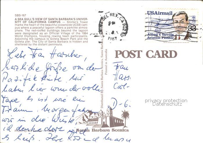 72500567 old postcard Santa Barbara California Panorama postalisch gelaufen Erhaltung siehe scans KatCode: 14140050000000
