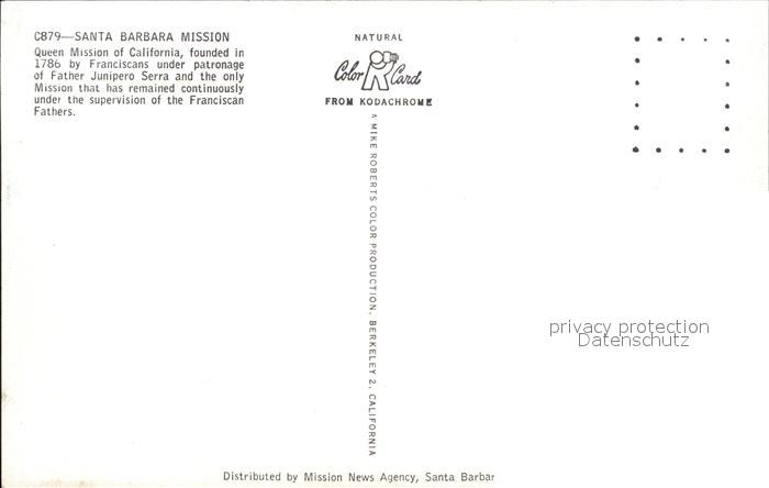 72493402 Santa Barbara California Queen Mission founded 1786 Cross postalisch nicht gelaufen Erhaltung siehe scans KatCode: 14140050000000