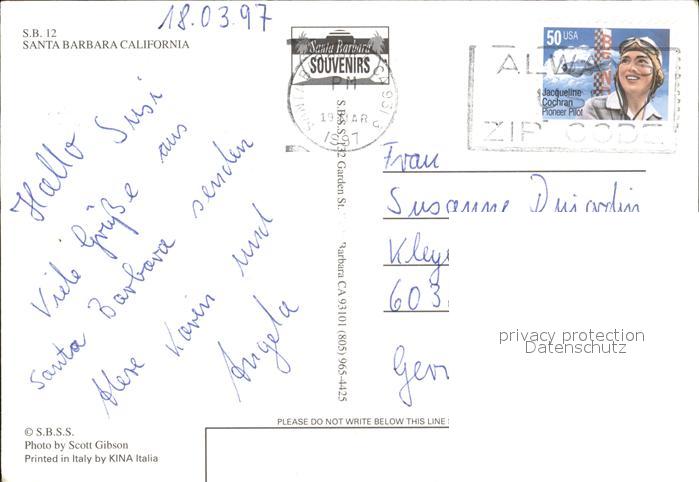 72487992 old postcard Santa Barbara California Strand postalisch gelaufen Erhaltung siehe scans KatCode: 14140050000000