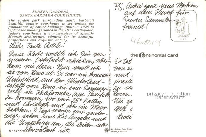 72397929 Santa Barbara California Sunken Gardens postalisch nicht gelaufen Erhaltung siehe scans KatCode: 14140050000000