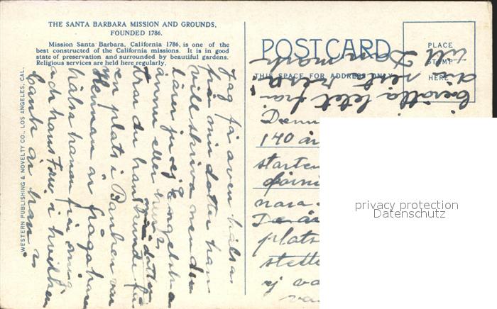 71568770 Santa Barbara California The Santa Barbara Mission and Grounds Fournded 1786 postalisch nicht gelaufen Erhaltung siehe scans KatCode: 14140050000000