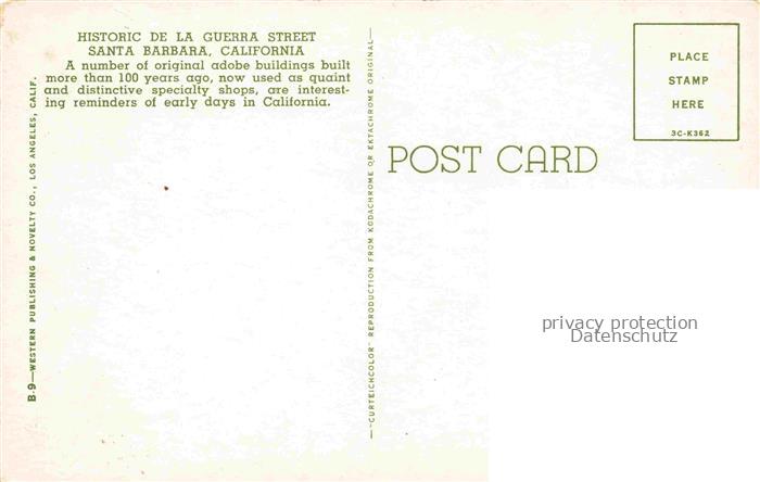 74012124 Santa Barbara California USA Historic de la Guerra Street postalisch nicht gelaufen Erhaltung siehe scans [FriedD77] KatCode: 14140050000000