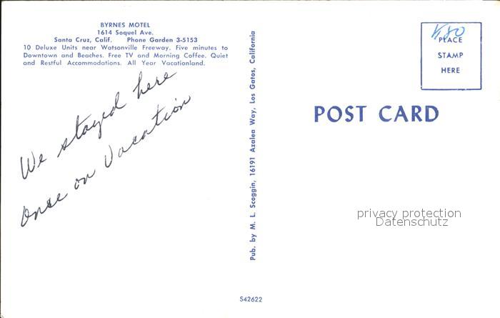 72463979 Santa Cruz California Byrnes Motel postalisch nicht gelaufen Erhaltung siehe scans KatCode: 14140050000000