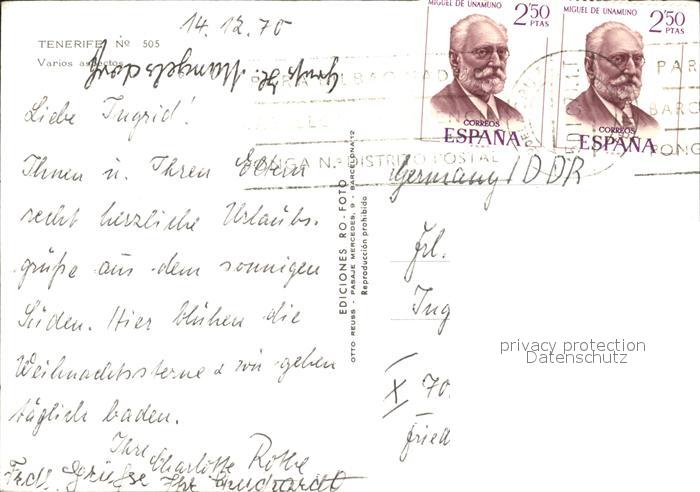 old postcard Santa Cruz de Tenerife Strand Kamel Hotels postalisch gelaufen Erhaltung siehe scans