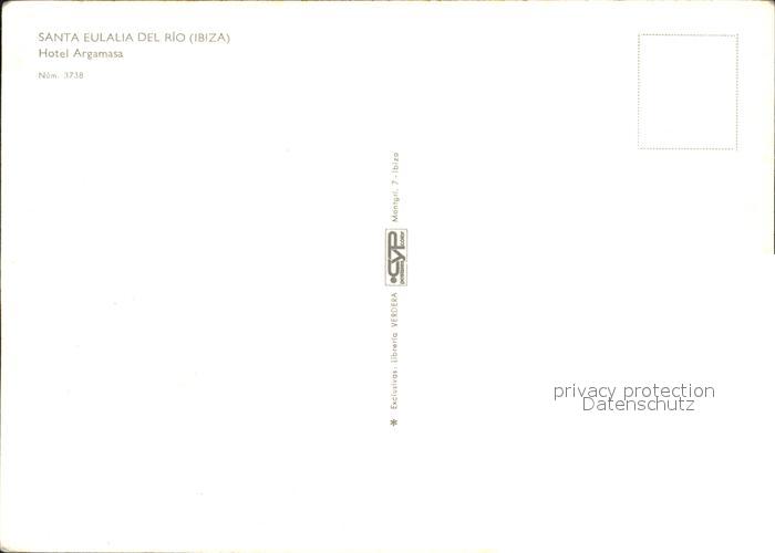 Santa Eulalia del Rio Fliegeraufnahme Hotel Argamsa postalisch nicht gelaufen Erhaltung siehe scans