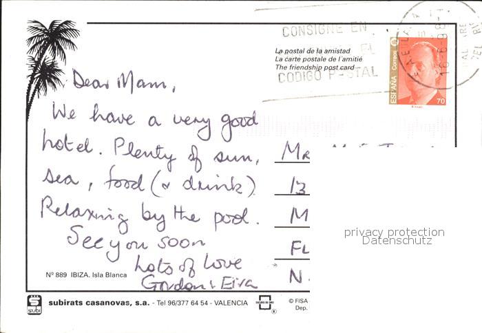 old postcard Santa Eulalia del Rio Fliegeraufnahme Hotel Cala Llonga postalisch gelaufen Erhaltung siehe scans